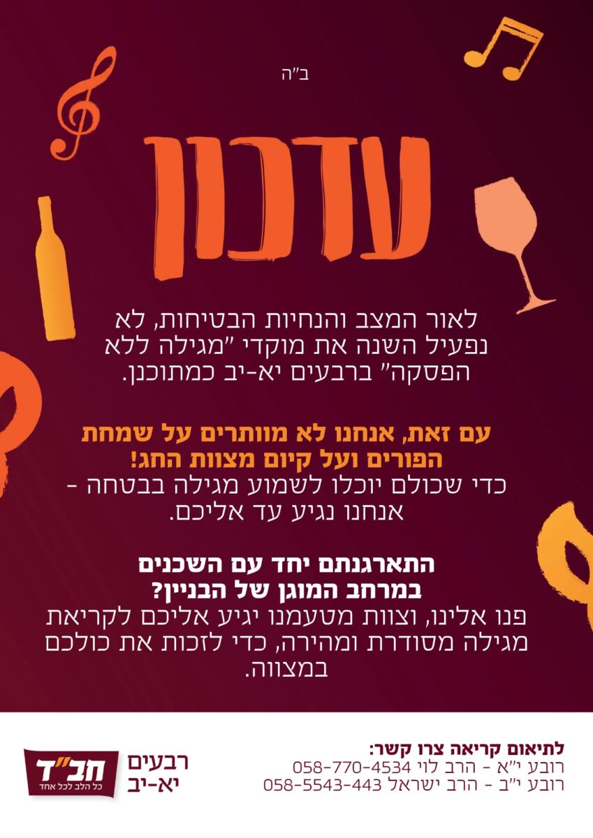 `שומרים על הביטחון ומביאים את השמחה אליכם לבניין!`