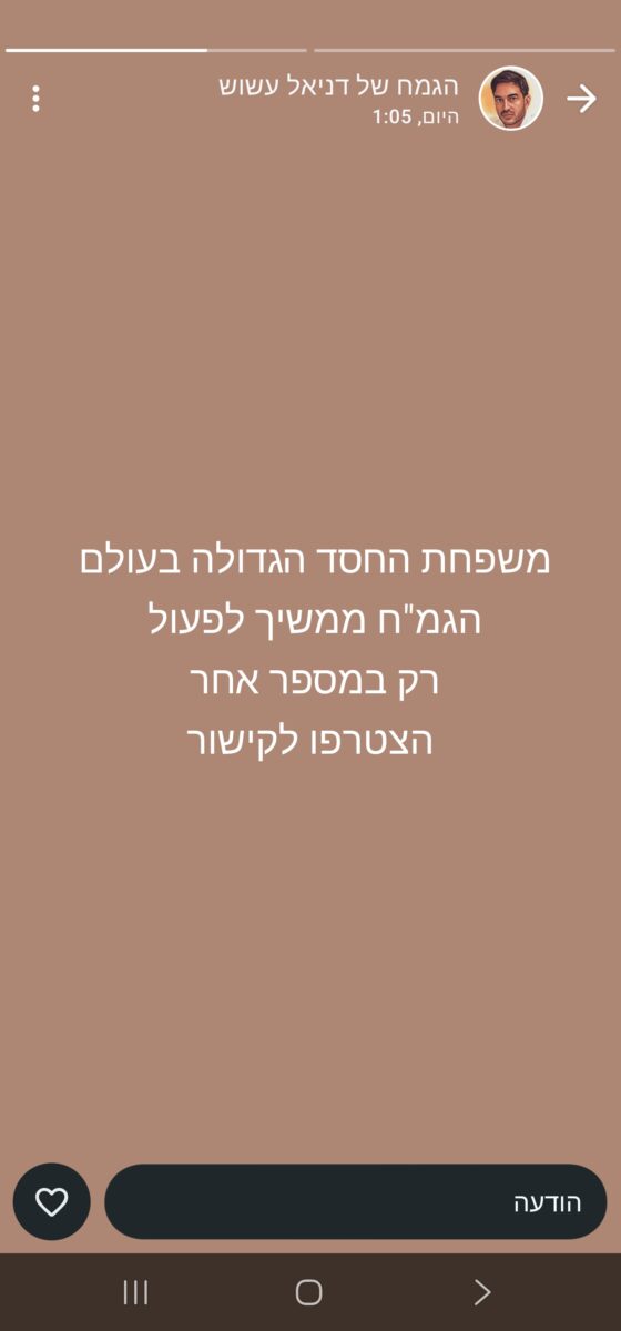 לא מעט שבחים והצלחות, קצר "הגמ"ח של אשוש" של איש החסד דניאל אשוש מאשדוד והוא אכן ראוי לכך בכל קנה מידה. כמות הצפיות שם עברה את כל המתחרים בפער, והגיעה לעשרות אלפים, וזה ממשיך לגדול ולהתרחב.