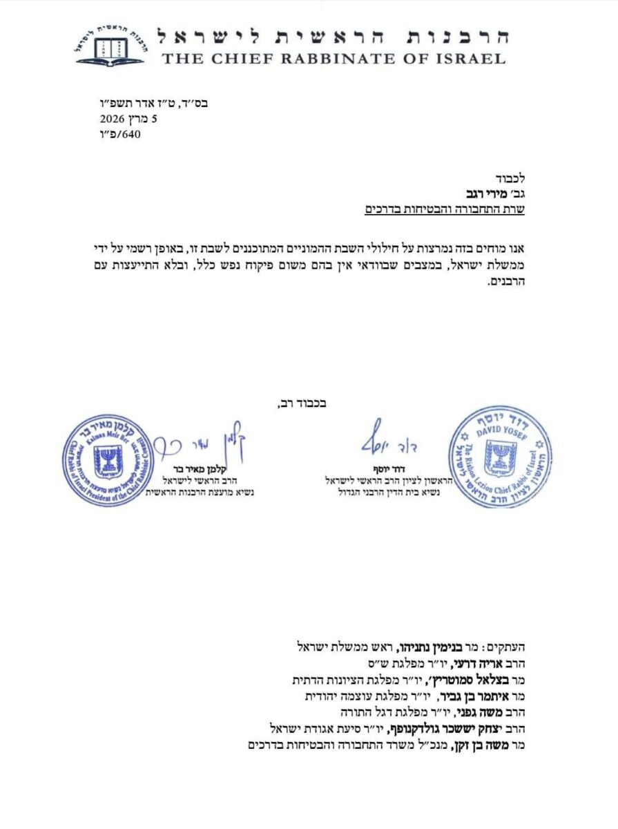 המכתב החריף של הרבנים הראשיים לישראל