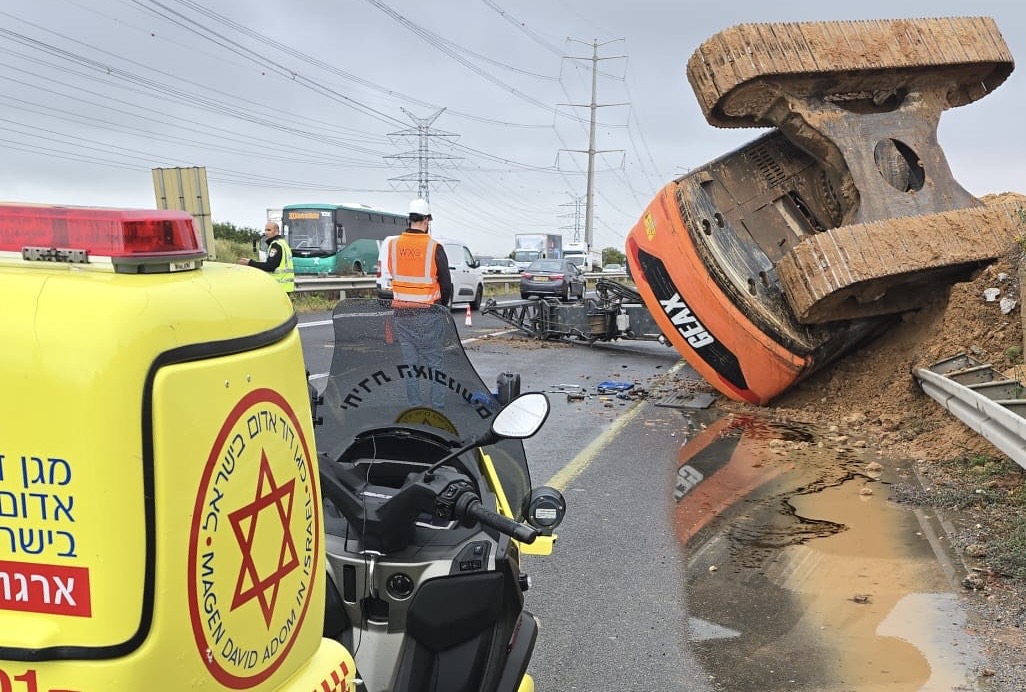 כונני תגובה מיידית של מד״א שהגיעו ראשונים לזירה דיווחו כי מדובר בכלי הנדסי שהתהפך על צידו. למרבה הנס, הנהג – צעיר כבן 25 – הצליח לצאת בכוחות עצמו מהדחפור רגעים לאחר התאונה.