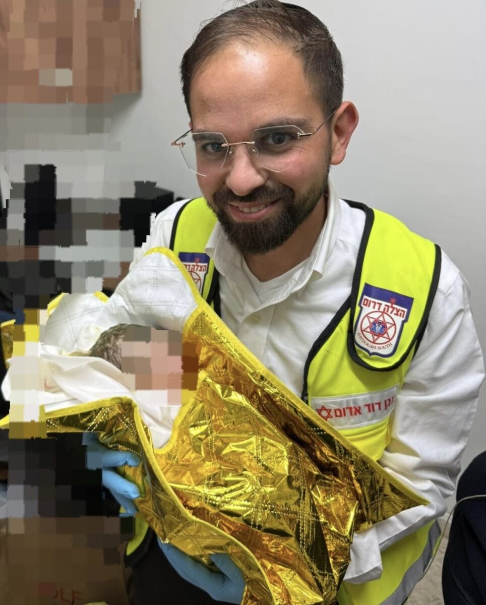 כונן מד"א-הצלה דרום רפאל אוקנין שהגיע למקום סיפר: כשהגעתי למקום הבחנתי באישה בתהליכי לידה מתקדמים, מיד סייענו בקבלת הלידה ובמזל טוב נולד בן בשעה טובה.